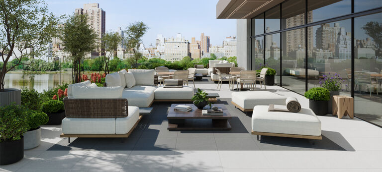 • Combinaciones de texturas y colores: perfectas para personalizar el espacio y crear zonas diferenciadas dentro de la terraza. Creato de Interceramic ofrece una amplia gama de diseños y matices que permiten jugar con las composiciones, aportando dinamismo y originalidad a cualquier ambiente exterior.