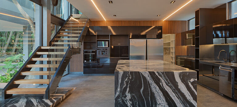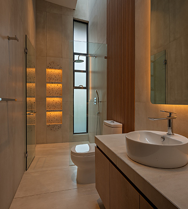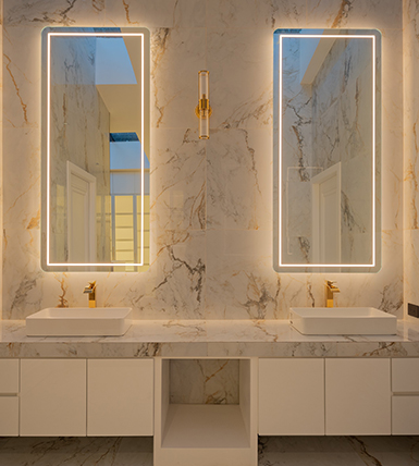 El proyecto destaca por el uso de acabados INTERCERAMIC® en un 80%, seleccionados para reforzar la estética y funcionalidad de cada espacio. La fachada se resolvió con Infinity Collection Simphony Grey, mientras que interiores y áreas específicas incorporan materiales que generan contrastes, atmósferas tipo spa, espacios de carácter sobrio o de fácil mantenimiento, según su uso.