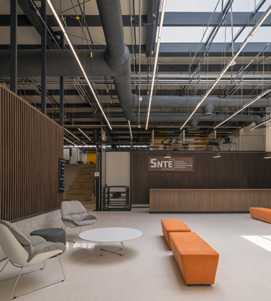 Uno de los principales retos técnicos fue la rehabilitación de la cubierta original, deteriorada y compuesta por materiales obsoletos. Se incorporó un sistema multipanel de dos pulgadas, mejorando las condiciones térmicas y acústicas sin comprometer la estructura existente. Además, la incorporación de tragaluces y patios internos potencia la iluminación natural, reduciendo la dependencia de medios artificiales y optimizando el confort interior.